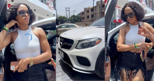 The young woman, identified simply as Amaka, was interviewed by content creator, MC Mbakara, after seeing the luxury car she was driving.